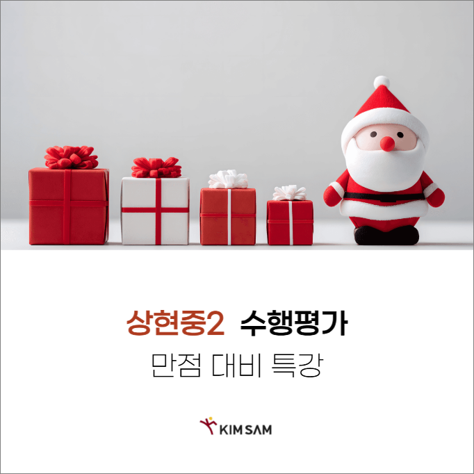 안녕하세요, 광교 김샘수학입니다! 상현중 2학년 학생들이 다가오는 기말고사를 앞두고 수행평가 준비에 박차를 가하고 있습니다. 김샘수학은 상현중학교에서 제공한 수행평가 자료와 출제 경향을 면밀히 분석하여, 학생들이 서술형 평가 구조를 완벽히 이해하고 만점을 획득할 수 있도록 실전 대비 특강을 마련했습니다! ◈ 상현중2 수행평가 안내 이번 수행평가는 도형의 닮음과 피타고라스 정리를 중심으로 진행됩니다. 1. 범위: 도형의 닮음 ~ 피타고라스 정리 2. 평가 내용 ① 삼각형의 닮음조건을 이용해 닮음 설명 ② 두 아이스크림 상품의 가격 비율 구하기 ③ 삼각형의 무게중심의 성질을 이용하여 수학적으로 설명 ④ 피타고라스 정리....... <img src="https://blogthumb.pstatic.net/MjAyNTExMjdfMjg4/MDAxNzY0MjM4MDE3NTU4.4CZmrkE7KiiA7f6XnGbR79pzXCYZ5HsPLaKzssKvHXsg.72-yIwH1k9F91vc65a7iWLunI7wW7Wi3o-RMGeHF6j0g.PNG/20251127_155808.png?type=s3" />