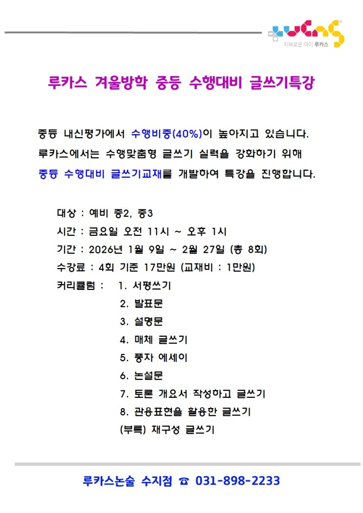 2026 수지점 겨울방학 수행대비글쓰기특강