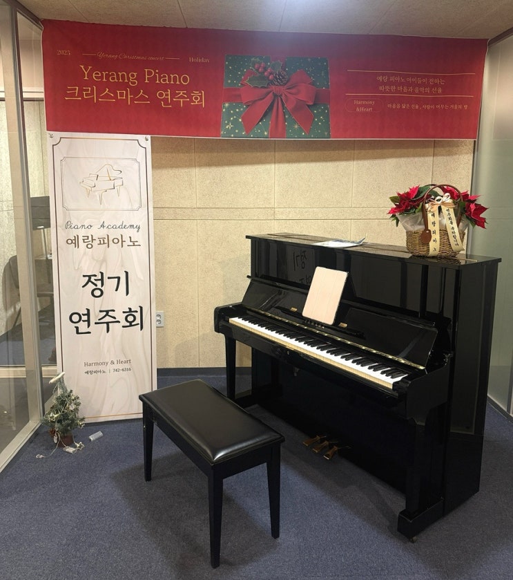 예랑피아노 정기 연주회 이야기 안녕하세요 예랑피아노입니다 지난 12월 19일, 예랑피아노 아이들과 함께 따뜻한 크리스마스 정기 연주회를 진행했습니다 ❣️ 연주회는 아이들에게 단순히 “연주를 잘하는 자리”가 아니라 그동안의 연습 과정 , 성장을 스스로 느껴볼 수 있는 소중한 경험이기에 매년 정성스럽게 준비하고 있습니다 ☺️ 매년 학원에서 진행했던 연주회를 올 해는 외부에서 진행하게 되었는데요 무대에 오르기 전부터 아이들의 설렘과 긴장이 함께 느껴지는 시간이었어요 서로를 응원하며 대기하는 모습에서도 그동안 함께 연습하며 쌓아온 시간이 고스란히 전해졌습니다 ❤️ 무대위에선 아이들의 당당하고 진지....... <img src="https://blogthumb.pstatic.net/MjAyNjAxMTFfMTY0/MDAxNzY4MTExOTM3NDY2.PzI0afVoGIEG8867KkNHjlwPt_3q6e5B3n4XRUFcTckg.yuk3nrTmTwgRVCMr_bGiEI2XcIV63eh6YhOkO32Cf0og.JPEG/output%A3%DF2401565412.jpg?type=s3" />