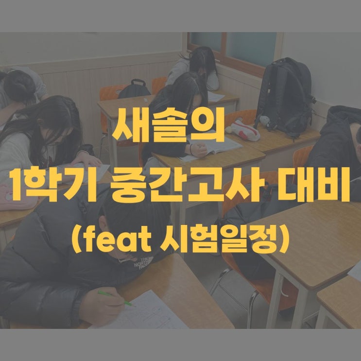 안녕하세요. 새솔학원 김 원장입니다. 4월이 시작되니 어느덧 목련이 지고 벚꽃이 흐드러지게 피고 있습니다. 꽂감상도 잠시 4월은 우리 새솔프렌즈들에게는 결과를 낳아야 하는 시험 준비 기간입니다. 다행히 이번 중간고사는 비슷하거나 같은 날짜에 시험을 보고 있어서 대비하는 입장에서는 반가운 일이지요. 우리 새솔 프렌즈들이 다니는 학교들의 시험 일정을 공유하겠습니다. 중등부 2026년 1학기 중간고사 일정 작년과는 다르게 도봉중학교 1학년의 시험이 2학기로 옮기면서 모든 1학년들은 시험 대비 대신 저희 프로그램으로 수업을 진행하고 있어요. 중학교 1학년 국, 수, 영 모든 반들이 1~2명 정도 자리만 남아있어서 수업을 원하시는....... <img src="https://blogthumb.pstatic.net/MjAyNjA0MDJfMjQ4/MDAxNzc1MTI1NTk5NDgw.r6Hgei51yDc7NSxkUtv4c22Q9jUetH4x96tT1xnhWqkg.8tgnlFqJGqtsw_J2RRwCLVViY1Siy9curB7ZH99JHj8g.JPEG/%C1%A6%B8%F1%C0%BB_%C0%D4%B7%C2%C7%D8%C1%D6%BC%BC%BF%E4._%281%29.jpg?type=s3" />