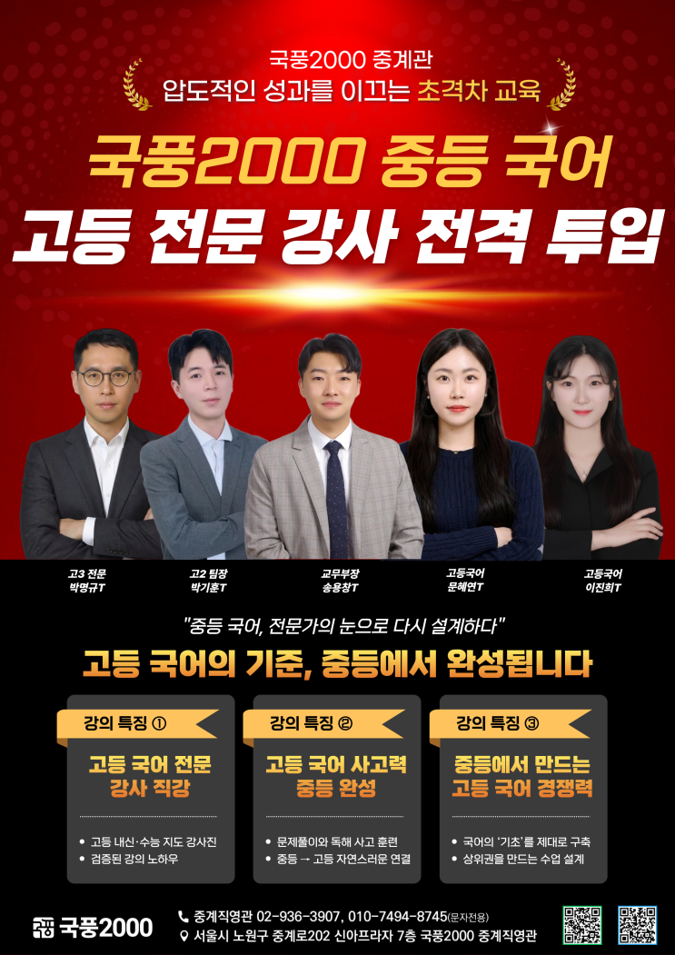 [국풍2000중계관] 중등 국어 : "고등 전문 강사" 투입! 2025 2학기 성적우수!