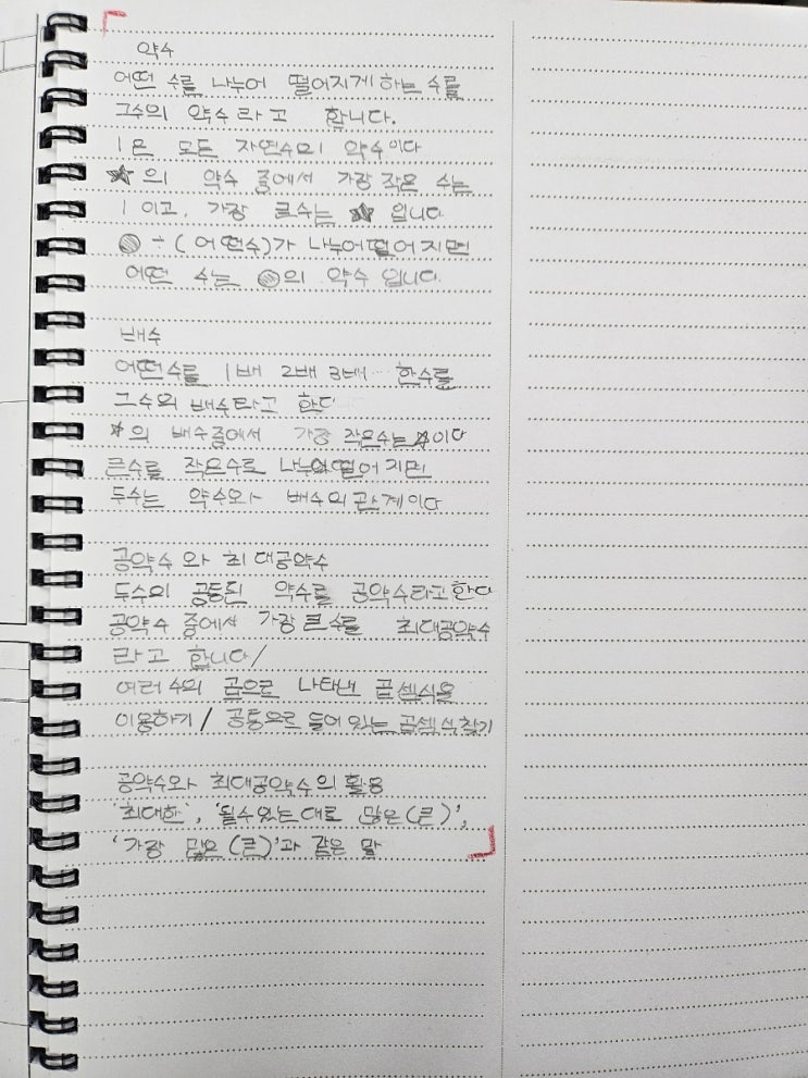 초등학교 5학년 수학의 '첫 번째 고비'라고 불리는 5학년 1학기 2단원 <약수와 배수>는 중등 수학까지 이어지는 아주 중요한 기초 체력입니다. 단순히 문제만 많이 푸는 것이 아니라, 개념을 직접 '쓰고' 선생님 앞에서 '말하는' 구술 테스트를 통해 빈틈없는 수학 실력을 만드는 공부법을 소개합니다. 5-1 수학의 핵심: 왜 '개념 쓰기'와 '구술'인가요? 많은 아이들이 "약수가 뭐야?"라고 물으면 "나누어떨어지는 수요!"라고 단답형으로 대답하곤 합니다. 하지만 응용 문제나 문장제 문제로 넘어가면 개념의 정의를 정확히 모르는 아이들은 금방 한계에 부딪....... <img src="https://blogthumb.pstatic.net/MjAyNjAxMTNfMjQ0/MDAxNzY4MzE0ODYyNDE0.omWmsmru0UFB_bZ5SLXMtA7XU64_lEc8zsyWfft4Xhsg.MdT0IXcrRCwPzzd1VIxP1gGPRwM10Vl4eqgfwhTTbiIg.JPEG/900%A3%DF20260113%A3%DF153737.jpg?type=s3" />