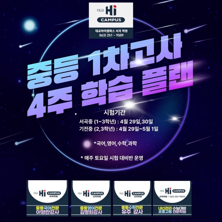 [서곡중, 기전중 주목] 서곡하이캠퍼스 중등 1차고사 시험대비반 운영 안내
