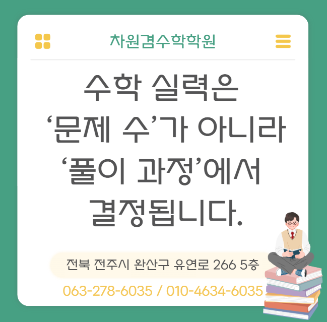중화산동수학학원 수학 실력은 ‘문제 수’가 아니라 ‘풀이 과정’에서 결정됩니다