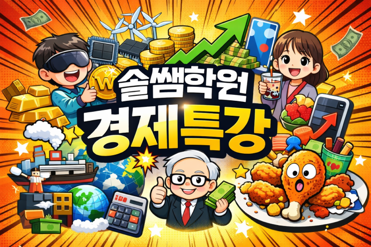 “두쫀쿠 가격이 왜 올랐어요?” 초등 경제특강에서 실제로 나온 질문입니다. 요즘 솔쌤학원에서는 아이들이 교과서 밖의 세상을 이해할 수 있도록 어린이 경제특강을 진행하고 있습니다. 이 특강은 단순한 상식 수업이 아니라, 아이들이 경제 흐름을 이해하고 스스로 생각하는 힘을 기르는 솔쌤학원만의 특별 프로그램입니다. 경제수업 "나의 경제 철학 꺼내기" 1주차 — 희토류와 무역전쟁 스마트폰과 전기차에 꼭 필요한 희토류가 무엇인지 알아보고, 왜 나라들 사이에서 무역 갈등이 발생하는지 함께 살펴보았습니다. 아이들은 “수출을 막으면 어떤 일이 생길까?” “어떤 나라가 더 유리할까?” 를 스스로 생각하며 경제가 실제....... <img src="https://blogthumb.pstatic.net/MjAyNjAyMTBfMTI1/MDAxNzcwNjkxMTg2NjEy.Hfvh3cqVhmLzZbMUgrWhTJhsTylrWbcn7D0XmQZbFg0g.ymT2AeRtpkYbjR7hZ7LYRLTmOaqSw3yhRJ_0ZM_aOI8g.PNG/%B0%E6%C1%A6%C6%AF%B0%AD%C0%CC%B9%CC%C1%F6.png?type=s3" />
