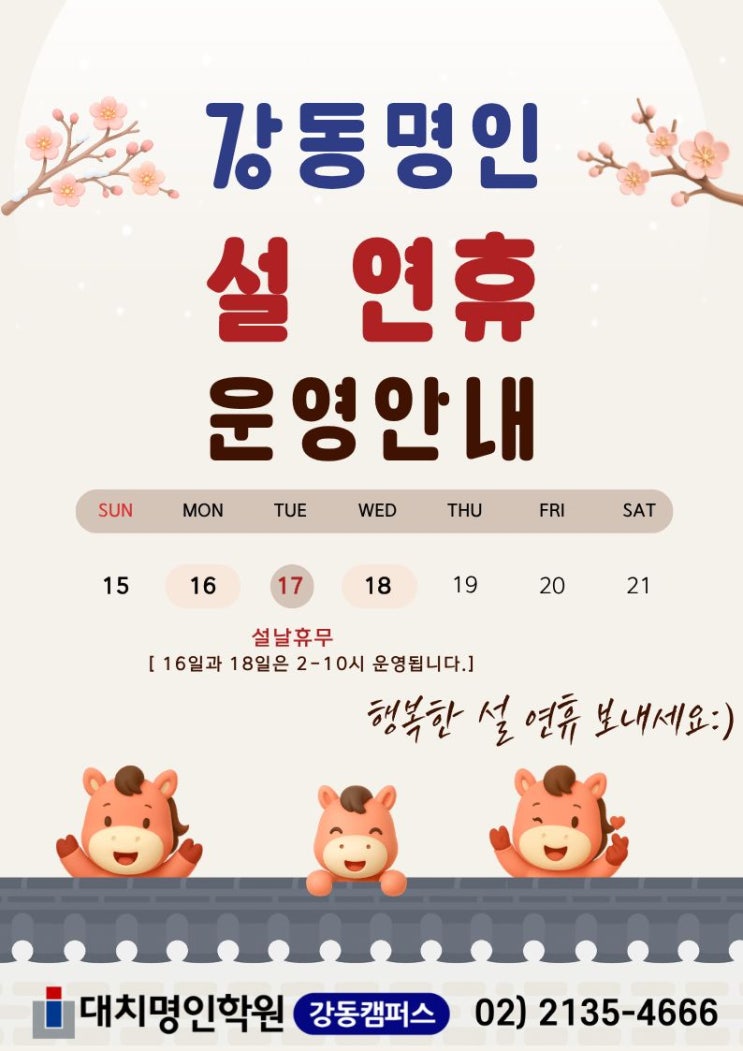 [대치명인강동캠퍼스] 2026 설 연휴 운영안내