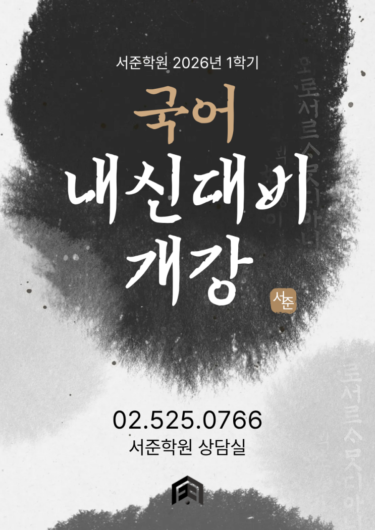 고등국어 내신대비반을 개강합니다. ✔️ 대상학교 서울고, 상문고, 서초고, 동덕여고, 서울웹툰애니메이션고등학교(스와스·서웹고·웹툰고), 반포고, 양재고, 한림예고, 서울공연예술고, 서문여고 이번 내신대비반은 ✔️ 판서 중심 수업반 ✔️ 개별 관리 중심 관리반 두 가지 형태로 운영되며, 학생의 학습 성향과 현재 실력에 따라 상담 후 반 배정을 결정하게 됩니다. 학교별 출제 경향과 시험 스타일을 반영한 수업으로 단순 문제 풀이가 아닌, 실제 내신 점수로 이어지는 학습에 집중합니다. 반 편성, 수업 시간, 커리큘럼 등 자세한 사항은 학원 행정실(02 525 0766)로 문의해 주시기 바랍니다. 감사합니다. #서울고....... <img src="https://blogthumb.pstatic.net/MjAyNjAyMDJfMTc2/MDAxNzcwMDM0MDM3NDUy.v-jCCN_tHiVPTMWBxdpsxN_caK22S5yJadvRe48MV6kg.9zEjNQEuAfuhs8IsXUnkQpHs8Cf2LZMu9qQVBOad5iYg.PNG/%C1%A6%B8%F1%C0%BB_%C0%D4%B7%C2%C7%D8%C1%D6%BC%BC%BF%E4._%2820%29.png?type=s3" />