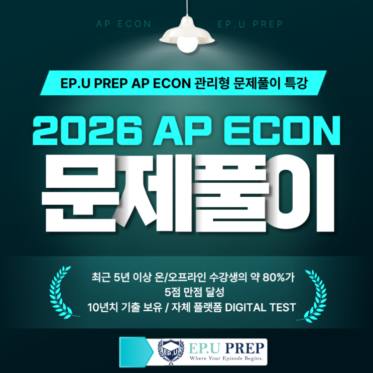 2026 AP ECON 시험 직전 대비 특강 안내 안녕하세요, EP.U PREP입니다. AP Economics 시험을 앞두고 단기간 점수 상승을 위한 “관리형 문제풀이 특강”을 진행합니다. 이번 특강은 단순한 문제 풀이가 아닌, 출제 패턴 분석 + 실전 적용 + 관리형 학습 시스템을 결합한 프로그램입니다. ✔️ 왜 EP.U AP ECON 특강인가요? 최근 10년 이상의 기출 문제 및 출제 유형 완벽 분석 College Board 기준에 맞춘 정밀한 문제 접근법 학습 단순 해설이 아닌, 문제를 ‘푸는 방법’을 체계적으로 훈련 자체 Digital Test 플랫폼으로 실제 시험 환경 완벽 대비 관리형 수업으로 학생별 취약 유형 집중 보완 ✔️ 결과로 증명합니다 최근 5년간 온·오프....... <img src="https://blogthumb.pstatic.net/MjAyNjA0MDFfMjEz/MDAxNzc1MDA5NDIxOTE4.1UULtpLjW1nw-_CxyxxZvpWJ291QG86rzxvUQCGhopwg.oTCQi8LOhNtegpsuRHzpT5nFRSinEQEs5lgVT1xAEtEg.PNG/1774959173099.png?type=s3" />