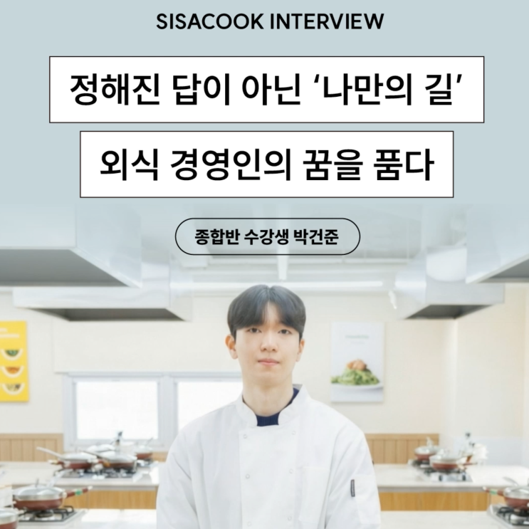 안녕하세요 시사쿡요리아카데미학원입니다:) 요식업창업, 막연하게 꿈만 꾸고 계신 분 있으신가요? '언젠가는 내 가게 하나 차려야지'라는 생각은 있는데, 막상 어디서부터 시작해야 할지 몰라서 그냥 시간만 흘러가는 느낌이었죠. 그런데 오늘 소개해드릴 박건준 수강생의 이야기를 보고 나서 생각이 완전히 바뀌었다는 걸 먼저 말씀드리고 싶습니다. 요식업창업의 꿈을 이루기 위해 가장 먼저 해야 할 일이 뭔지, 이 분의 이야기가 명확하게 보여주거든요 요리를 시작하게 된 이유 "내 생각을 직접 만들어내는 과정" 박건준 수강생은 시사쿡 요리아카데미학원 종합반을 통해 수원대학교 경영공학대학에 합격한 학....... <img src="https://blogthumb.pstatic.net/MjAyNjAzMjdfMTgx/MDAxNzc0NjA4MDA4ODU4.Uo2uYqPJs44Jxx5hu0EsdNxLoWT5S-DJEyC1ogeua3Ug.nh6W0QyIdSlIunfHcYoJBdaW3QsixMNXswkd64bCLa4g.PNG/%BD%BA%C5%A9%B8%B0%BC%A6_2026-03-27_19.38.57.png?type=s3" />