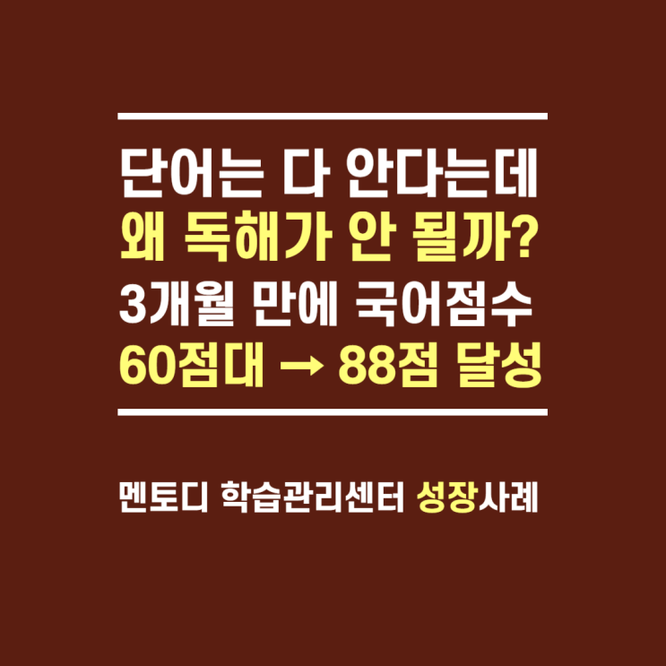 [멘토디 성장사례] 단어는 다 안다는데 왜 독해가 안 될까? 3개월 만에 60점대 → 88점