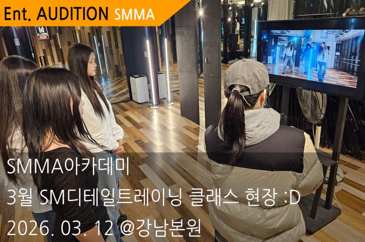 안녕하세요 강남댄스학원 SMMA아카데미입니다! 최근 SMMA아카데미에서는 SM 디테일 트레이닝 클래스가 진행되었습니다. 단순한 수업이 아닌 실제 SM엔터테인먼트 트레이닝 방식이 적용된 특별 클래스로 학생들에게 매우 의미 있는 시간이었습니다. SM 디테일 트레이닝 클래스 현장 이번 클래스는 SM엔터 출신 트레이너 직강으로 진행되었습니다. 에스파(aespa)를 직접 지도하신 강사님이 진행 하셨다는 점에서 학생들의 집중도와 만족도가 매우 높았습니다. 어떤 점이 특별할까요? 이 수업은 단순히 안무를 배우는 것이 아닙니다. ✔ 동선 디테일 ✔ 표정 & 시선 처리 ✔ 카메라 대응 ✔ 무대 위 에너지 전달....... <img src="https://blogthumb.pstatic.net/MjAyNjAzMjdfMjE4/MDAxNzc0NTg2MTQxNTg3.UfgCXcvM8Lm9jbGFONE4Tn39aJ9pfh96eAEitkUOYsQg.qJjDCIZ0OehELp19763wLOG6MNSuFpwpYEUz59UrK9wg.JPEG/1.jpg?type=s3" />