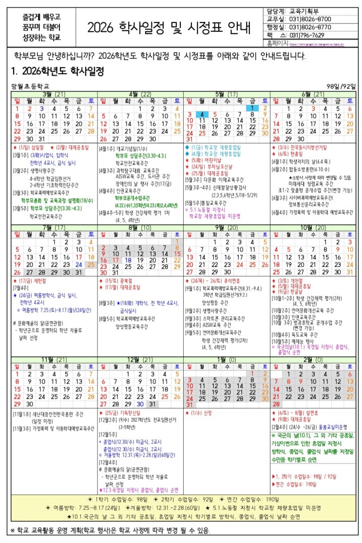 강일동 대은수학, 망월초/윤슬중/상일중 학사일정