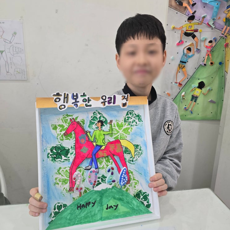 2026년, 힘차게 달려 나가는 붉은 말처럼 우리 아이들의 꿈도 멋지게 펼쳐지길 바라는 마음을 담았습니다. 이번 시간에는 동물의 구조를 이해하고, 그 위에 올라탄 나의 역동적인 모습을 그리며 인체와 동물의 조화를 탐구해 보았습니다. 이번 수업, 무엇을 배웠을까요? 1. 동그라미로 시작하는 동물의 구조 이해 말의 튼튼한 몸통과 긴 얼굴을 **원형(도형)**을 활용해 구조적으로 이해해 봅니다. 복잡한 형태를 단순한 도형으로 나누어 생각하며 형태 분석력과 비율 감각을 키웁니다. 2. 관절 표현으로 만드는 생생한 움직임 멈춰 있는 말이 아니라, 굽이치며 달려 나가는 말의 다리 관절을 관찰하여 표현합니다. 관절의 꺾임에 따라 동작....... <img src="https://blogthumb.pstatic.net/MjAyNjAzMTNfMTQ5/MDAxNzczMzcxMDkwMTYx.T6v7yvl4KiPBc4BUxVz0O5ZuDr1ZVXcKKt7ntKg0P70g.spZYFthRD5UVxVuP5xq-H2HMtARQJymdnrY33D6ua0Ug.JPEG/1000032317.jpg?type=s3" />