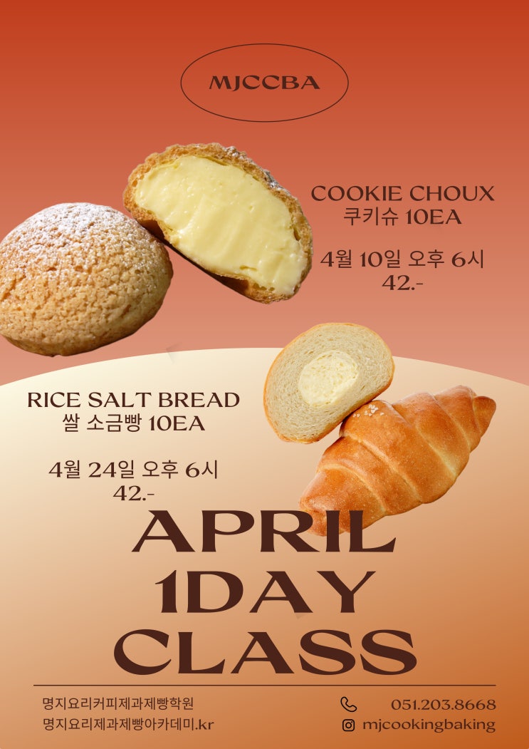 안녕하세요, 명지요리커피제과제빵학원입니다. 세상에나....... 벌써 2026년도 3개월이 지나간게 실화인가요.......!!!! 시간이 너무 빨리 흐릅니다... 아까운 시간 그냥 흘려버리지 말고, 평소 하고 싶었던 것들 하면서 조금이라도 내 시간 알차게 보내보자구요~ 정규과정이 부담스러웠던 분들은 원데이 클래스에 참여해 보세요~ 전화로 문의하시거나 신청하시면 됩니다. 051.203.8668 <img src="https://blogthumb.pstatic.net/MjAyNjA0MDJfMTgx/MDAxNzc1MTEyODk1MjUx.MFk_1YpAw4tkgP6vQEjxi-t78JVdjdsd4ncsgjj3Uw0g.iERfxt8j8tbChKrWuqEmn343LWbjz3XK3anmP2Twspcg.JPEG/4%BF%F9_%BF%F8%B5%A5%C0%CC.jpg?type=s3" />