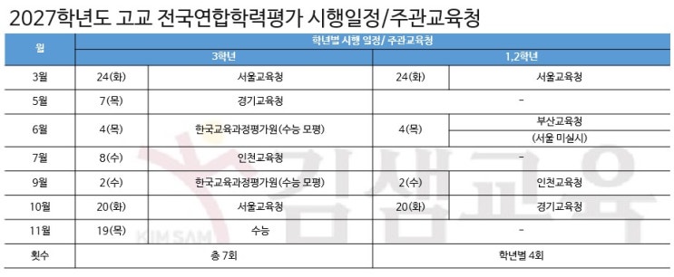 2027학년도 모의고사 연간일정