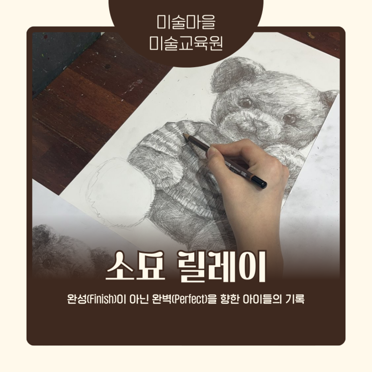 안녕하세요 >.< 아이들의 꿈이 자라나는 공간 미술마을 박원장입니다. 활기찬 2026년의 시작, 미술마을 아이들은 벌써 창의력 에너지를 가득 채우고 있답니다. 8시간에서 16시간, 시간의 무게를 견디다 5학년부터 중등부까지, 우리 아이들이 긴 시간 한 작품에만 몰입하는 '소묘 릴레이'를 작업했습니다. 단순히 그리는 시간이 긴 것이 아니라, 관찰하고 수정하고 다시 채워 넣는 반복의 과정이 아이들의 시각적 문해력을 어떻게 높여주는지 설명합니다. "요즘처럼 빠른 결과만을 원하는 시대에, 16시간 동안 한 화면을 마주하는 경험은 아이들에게 무엇보다 소중한 자산이 됩니다." 연필 한....... <img src="https://blogthumb.pstatic.net/MjAyNjAzMDJfMTA5/MDAxNzcyNDMwOTg4NjAx.06EPs0AB2XxxPJ4THVdJFT8fyz3qEHoHhhmmoE-ftMwg.Xz6JJchUbCBvrnqscMchL8diJSeUBO2Llf1vs-_3cQEg.PNG/blog_thumbnail_.png?type=s3" />