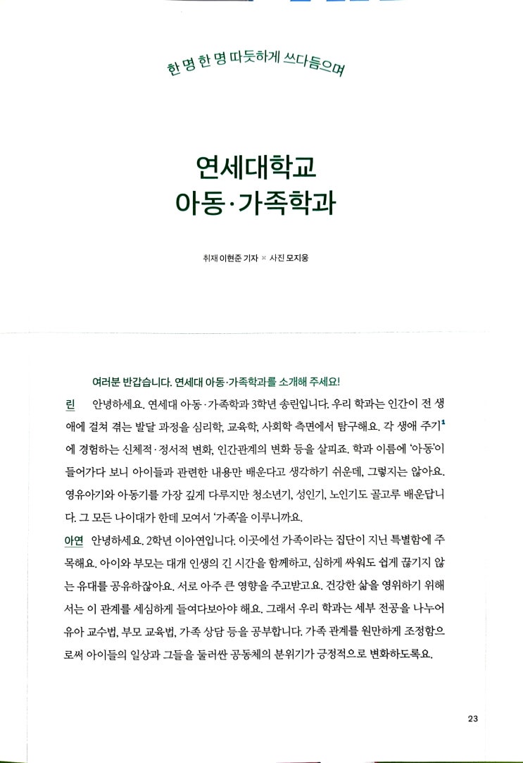 아동 가족학과 - 고교 독서평설 2월호 연세대
