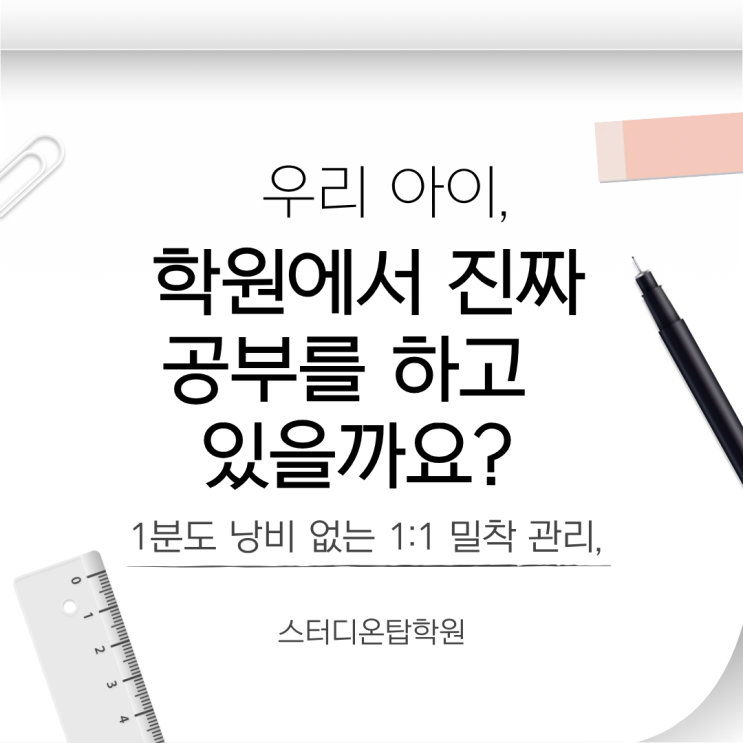 안녕하세요! 올바른 학습의 길을 제시하는 스터디온탑학원입니다. 혹시 아이를 학원에 보내놓고 이런 걱정 해보신 적 없으신가요? "우르르 몰려가서 가방만 메고 왔다 갔다 하는 건 아닐까?" "앉아있는 시간은 긴데, 왜 성적은 그대로일까?" 많은 아이들이 학원에서 긴 시간을 보내지만, 그 시간이 모두 '진짜 공부'로 이어지는 것은 아닙니다. 남들이 진도를 나간다고 해서 억지로 끌려가듯 듣는 수업은 결국 소중한 시간만 낭비하게 만들 뿐이죠. 그래서 스터디온탑학원은 다르게 가르칩니다. 아이의 소중한 시간을 단 1분도 낭비하지 않도록, 완벽한 1:1 밀착 관리를 고집합니다. 왜 '1분도 낭비하지....... <img src="https://blogthumb.pstatic.net/MjAyNjAzMjNfMTky/MDAxNzc0MjcwNzk4Njk3.E7I8YnCqeiPVl6ZhrVawFHVRYDp_OU6zBnsVcSUn5qEg.nBReHcxEMN1OdaKFrn35aivyr-saH3GX8XXtT0wAla8g.PNG/1.png?type=s3" />