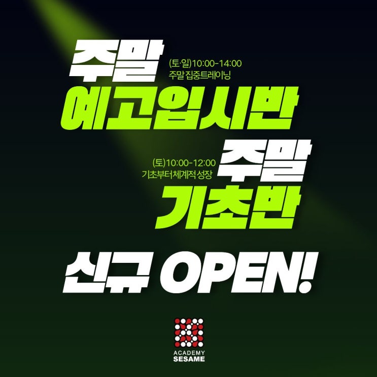 주말 시간을 활용한 체계적인 트레이닝, 이제 쎄서미아카데미에서 시작하실 수 있습니다. 주말 예고입시반 / 중등기초반 신규 오픈! 모집 과정 안내 -주말 예고입시반 토·일 14:00 ~ 18:00 (4시간 집중 수업) 입시 대비 실전 중심 커리큘럼 -주말 중등기초반 토요일 10:00 ~ 12:00 기초부터 차근히 쌓는 입문 과정 쎄서미아카데미 합격 성과 쎄서미아카데미와 함께한 학생들의 결과입니다. -안양예술고등학교 4년 연속 합격! -한림연예예술고등학교 4년 연속 합격!(2025년 전국 최다 합격) -고양예술고등학교 2년 연속 합격! -서울공연예술고등학교 합격자 및 콘테스트 수상자 배출! + 경기예술고등학교, 대중예술고등학교 등 다수 예고 합격생 배....... <img src="https://blogthumb.pstatic.net/MjAyNjAzMjdfMjgg/MDAxNzc0NjA5Mzk4MDc1.7Bq7SnuvVB5jOmlHKUepUPA3UOMdenv5x61rN5ApkJ0g.4K7WC4IkODV0AslxrJ-dq7m58veJdofsIZT5Rt1vcl8g.JPEG/%C1%D6%B8%BB_%C0%D4%BD%C3%B9%DD_%C8%AB%BA%B8%B9%B0-_%BA%B9%BB%E7%BA%BB.jpg?type=s3" />