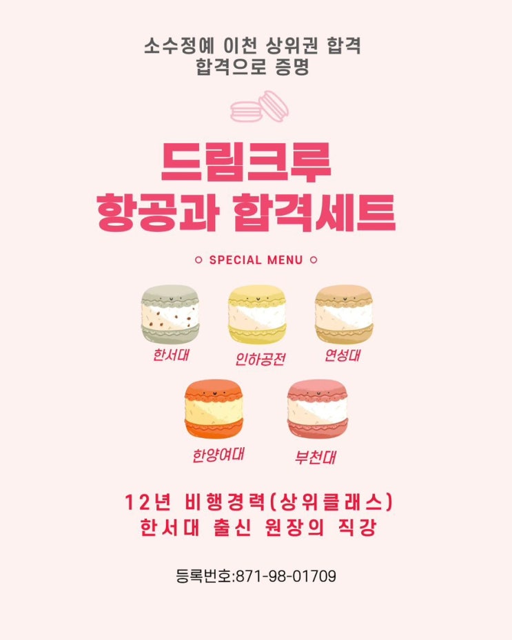 27,28학번 위한 커리큘럼 -한서대 항공관광학과 원장출신 -소수정예 수업 -기본기 탄탄한 수업 -고3을 위한 시간맞춤 -학교별 모의면접 -영어지문 -롤플레잉 -보이스트레이닝 -이미지 메이킹 -승무원헤어,메이크업 교습비 -기본과정 350784원 -모의면접 263088원 -단기반 500000원 -1년 수업비 2100000원(고3 수시2차 수업) 등록번호:871-98-01709 26학번 드림크루출신들이 한서대,인하공전,한양여대,부천대,연성대에 당당히 합격했습니다 합격 발표날 확실한 합격으로 보다 환한 미소로 보답하겠습니다. #이천 승무원교습소#승무원#드림크루#항공과준비#항공과면접#수시1차준비#4년제면접준비#양정여고#이현고#다산고#이천제일고#효양고#마장고....... <img src="https://blogthumb.pstatic.net/MjAyNjAzMThfMTU2/MDAxNzczNzY2ODYzMzU5.BT9EgS3vGDsjbvQJf-jiWlek2yboZ6h_orbERI97uzYg.1F4M96VaoHayzbbeNS6QqqFnQ_18YQ_OdcJoHi2bPIkg.JPEG/%B5%E5%B8%B2%C5%A9%B7%E7_%C7%D5%B0%DD%BC%BC%C6%AE.jpg?type=s3" />
