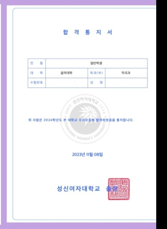2024 수시, 지원 대학 전원 '최초 합격' 기록 입시에서 가장 긴장되는 순간인 수시 발표날, 저희 레슨실은 축제 분위기였습니다. 한 학생이 지원한 모든 대학에서 '최초 합격' 통보를 받았기 때문입니다. 숙명여자대학교 작곡과 최초 합격 성신여자대학교 작곡과 최초 합격 상명대학교 작곡과 최초 합격 추계예술대학교 작곡과 최초 합격 합격의 핵심: 학교별 '맞춤형 컬러' 매칭 수시는 대학마다 실기 비중과 선호하는 스타일이 극명하게 갈립니다. 저는 학생의 강점을 분석하여 각 대학이 원하는 '정답'에 가까운 곡을 쓸 수 있도록 1:1 밀착 지도를 진행했습니다. 결과는 보시는 바와 같이....... <img src="https://blogthumb.pstatic.net/MjAyNjAzMTRfMTUg/MDAxNzczNDY4MDAxNzU3.eiZO0aXSL_-B7n8Wr49RQUUhGjcpmRRnNJnPRTlmT70g.sCsr2zj_D1_FN6BBzBjjrtpeH9YvKaxV_kgQINHe_Kwg.JPEG/Screenshot%A3%DF20231121%A3%AD113347%A3%DFKakaoTalk.jpg?type=s3" />