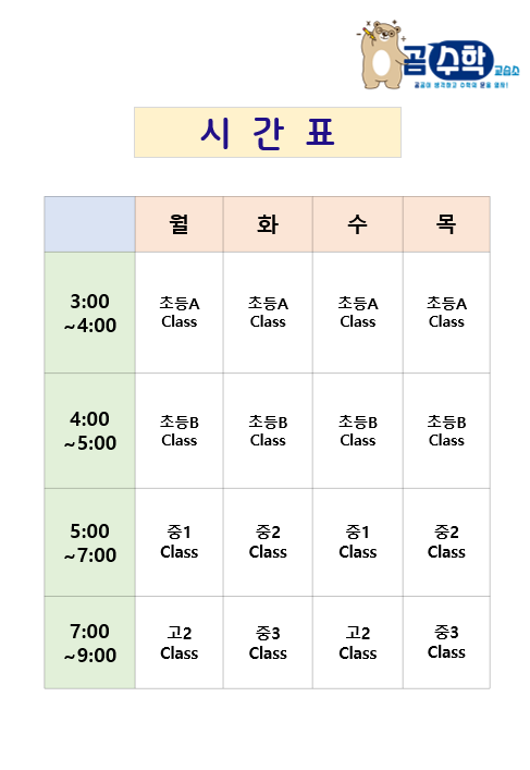 (여주곰수학)2026년1학기 시간표