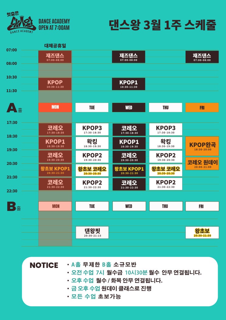 안녕하세요 홍대댄스학원 댄스왕 입니다 체험은 선착순입니다 빠르게 신청하세요:) 1. 댄스왕 시간표 체험문의는 아래를 눌러주세요:) 바로 신청가능합니다! 홍대댄스학원 댄스왕 장르별 박스를 누르면 수업 음악을 들을 수 있습니다:) K-POP COVER 케이팝 커버댄스 [ IVE 아이브 GAEUL 가을 - Odd ] 수 원데이 10:30 케시T (00:46~1:02) 수 원데이 18:30 / '20:30(왕기초로 쉽게)' 유진T (00:46~1:02) https://youtu.be/3-l7rpY1Fp0?si=P_NJtErHq3VdFvcZ K-POP COVER 케이팝 커버댄스 [ KiiiKiii 키키 - 404 New Era (뮤비ver) ] 화목 19:30 / 21:30 다키T https://youtu.be/9sixI39RjVc?si=sjmsp8fHxhL5f4UX K-P....... <img src="https://blogthumb.pstatic.net/MjAyNjAyMjZfMjUw/MDAxNzcyMTAzMDE1MzY2.q1OeWS2QEo46qyzfaupNiLifa2fUKUgw9UV0rrWWzaIg.RZ73nbYD9VvBS9LGGYd_QWOJltd-yYOeCPrtQIAmXzgg.JPEG/0.%B4%ED%BD%BA%BF%D5%BD%C3%B0%A3%C7%A5.jpg?type=s3" />
