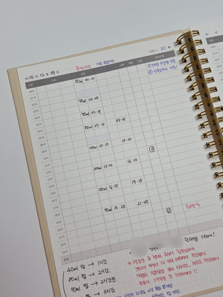 콩떡이의 신생아 시기. 처음 해보는 육아에 몸도 힘들고, 모르는 것, 걱정되는 것들에 정신도 힘든.. 비몽사몽 우당탕탕 육아기록 ^_^....! with 산후도우미 2주 25. 12. 29 ~ 26. 1. 12 산후도우미 시작 D-1, 주말 밤 조리원 퇴소하자마자 주말이라 초보엄마아빠끼리 우여곡절 보내느라 고생했수다.. 밤잠 재우고 브이브이 ! 드디어 내일부터 관리사님 오신다,, 얼른 와주세요~~~~ 조리원에서는 내가 따로 기록할 게 없었지만 이제부터는 수유기록을 해야하므로 쿠팡에서 급하게 주문한 수유노트 :) 사람들 대부분 어플로 기록을 많이 하는데 난 그냥 식탁위에 노트 펴놓고 기록하는 게 아무때나 바로바로 한 눈에 보기 편해서 좋았다. (아기 보....... <img src="https://blogthumb.pstatic.net/MjAyNjAzMDlfMTQ4/MDAxNzczMDYxMjEwODIy.pnKVtxbPywcCVf_axF_q5jQwOSGJJHqYCY6eqcFQoV0g.lEfOaleg_i7E9pA8yoOSGq2cJgyFa9wgBB3vqp5rfwEg.JPEG/900%A3%DF20251229%A3%DF213003.jpg?type=s3" />