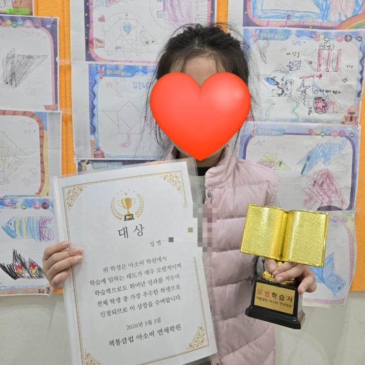 지난 주 문래 아소비 시상식이 열렸어요. 학습 태도가 모범적이고 학습 능력이 향상된 아이들이 이번 시상식의 주인공이 되었지요. 공부를 잘 하는 것보다 중요한 것은 긍정적인 학습 정서와 학습 유능감이지요. 대상과 최우수상은 각 반에서 세 명씩만 받아 더욱 의미있었답니다. <img src="https://blogthumb.pstatic.net/MjAyNjAzMDhfMTY0/MDAxNzcyOTU3MzQzNjQy.zz1pumuwox_zNc5olB2URmkQAt20L9LmmvXrH7tKsZ0g.HjEuBlt3qIVCDH_vIZ_9EO-QRt8ZT-0tn8wu--XZERwg.JPEG/900%A3%DF1772957338550.jpg?type=s3" />