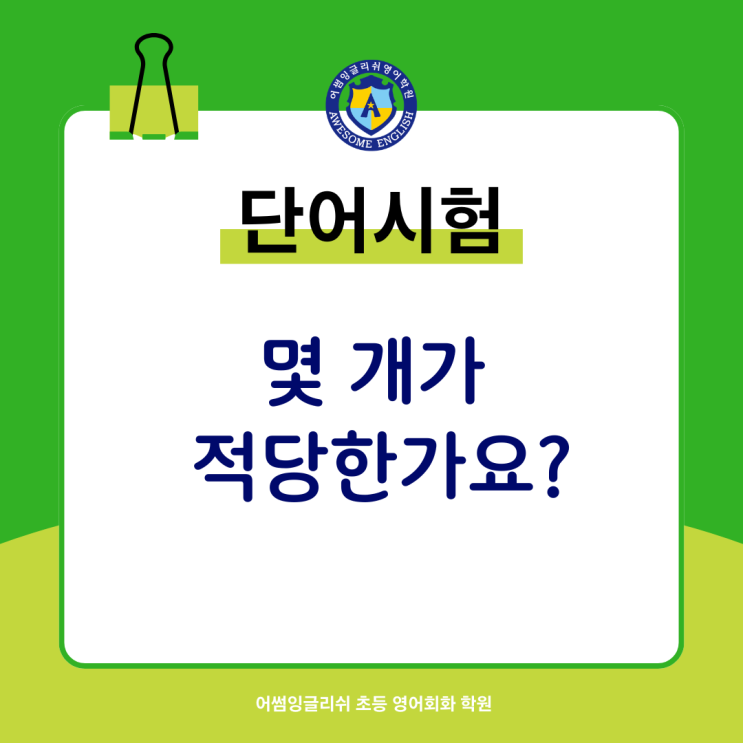 초등영어, 단어시험은 몇 개가 적당한가요? [ 노원 공릉동 중계동 초등 영어회화 학원 ✨어썸잉글리쉬✨ ]