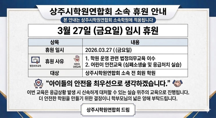 상주영어 벨영어 학원의 날 휴원안내드립니다.