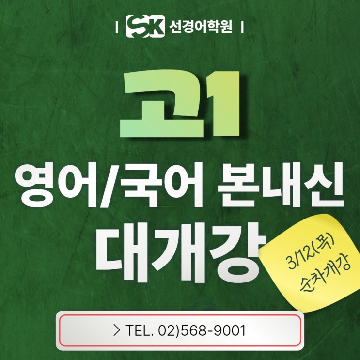 [선경어학원] 고1 영어&국어 3월 본내신 시간표 안내
