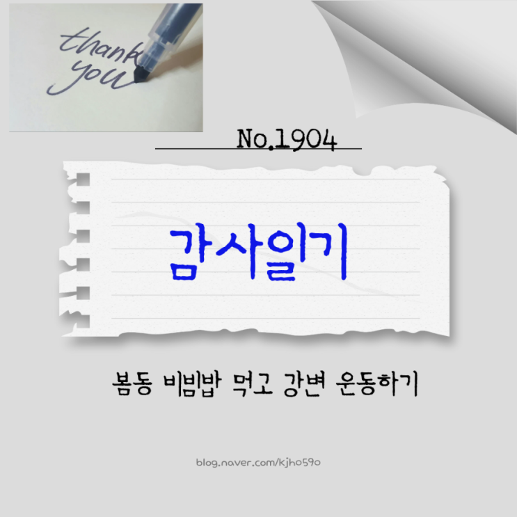 #감사일기1904 3.14 (토) 봄동 비빔밥 먹고 강변 운동하기 보충수업 하러 갔다가 갑자기 못온다는 연락을 받고 점심을 집에서 먹으러 간다. 약속을 시간이 지나서 못온다고 하는 건 이해가 안되는 대목이다. 학원을 정리할까 하다가 감자마켓에 픽업할 상품도 있고해서 들러서 몇가지 더 구입하고 집으로 간다. 아내는 반찬을 여러가지 만들어 어머니 댁에서 저녁 먹으려 했는데 동창회 모임서 드신 게 소화가 안되다고 하셔서 집으로 갖다드리고 온다. 막내의 요청으로 봄동 겉절이를 만들었는데 아이들도 맛나게 먹었다. 집 마당 화분에 있는 쪽파도 이용했다. 봄이라 부추도 제법 싹이 났다. 저녁 식사 후 강변에 나가서 오랜만에 운....... <img src="https://blogthumb.pstatic.net/MjAyNjAzMTVfMjA2/MDAxNzczNTQ2MTcxMTYz.VwuiZtxCWyqbR2AblGTu1JYWzw_wNDDqBBxsN7Ojimcg.FtgT7wcdSuRT3Rhn-bnQRfm8Av4IQ2wUG9EB_gVdEyQg.PNG/900%A3%DF2412%A3%DF%C5%B8%C0%D3%BF%B5%BC%F6%C7%D0%BF%F8_%C4%AB%B5%E5%B4%BA%BD%BA_%B5%F0%C0%DA%C0%CE%C0%C7_%BB%E7%BA%BB%A3%DF20260315%A3%DF093754%A3%DF0000.png?type=s3" />