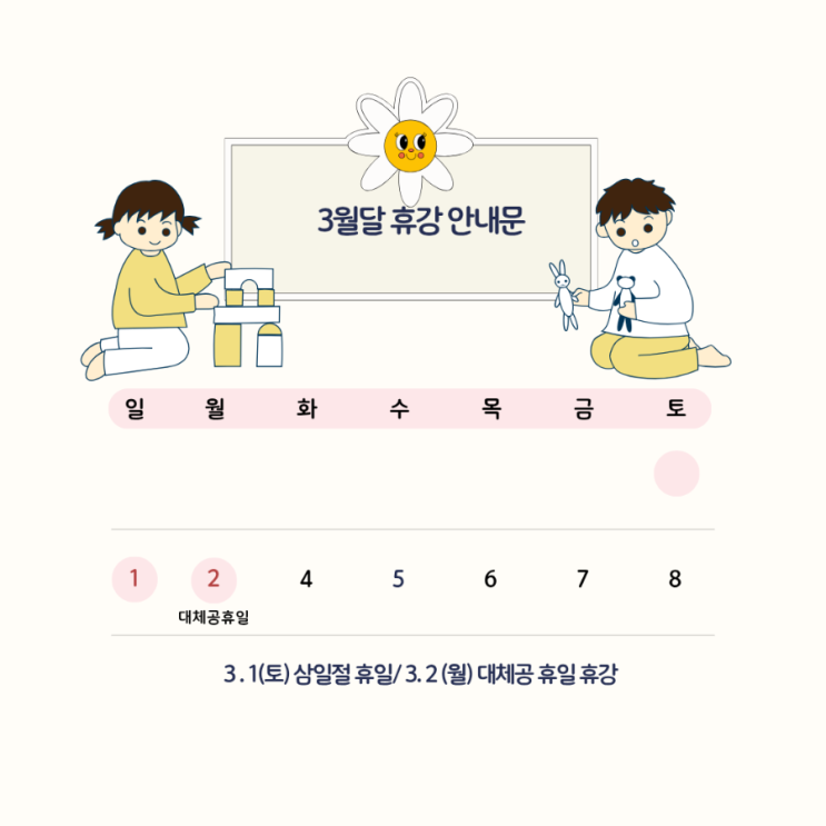 3월달 휴강 안내드립니다 “두근두근 새학기, 웃으며 만나요.” ##봉담발레학원 #봉담무용학원 #화성발레학원 #새학기 #봉담초등발레 <img src="https://blogthumb.pstatic.net/MjAyNjAyMjdfNDEg/MDAxNzcyMTc0NDk5MTAx.wIiDIq1XW3PdHtgD-KdmX30fI1EKgf65Mmuq10UD2JEg.LMOp368WMa-h9T92-D-JKKNJE13r7d4NO0U_Y6OUyu8g.PNG/900%A3%DF1772173012275.png?type=s3" />
