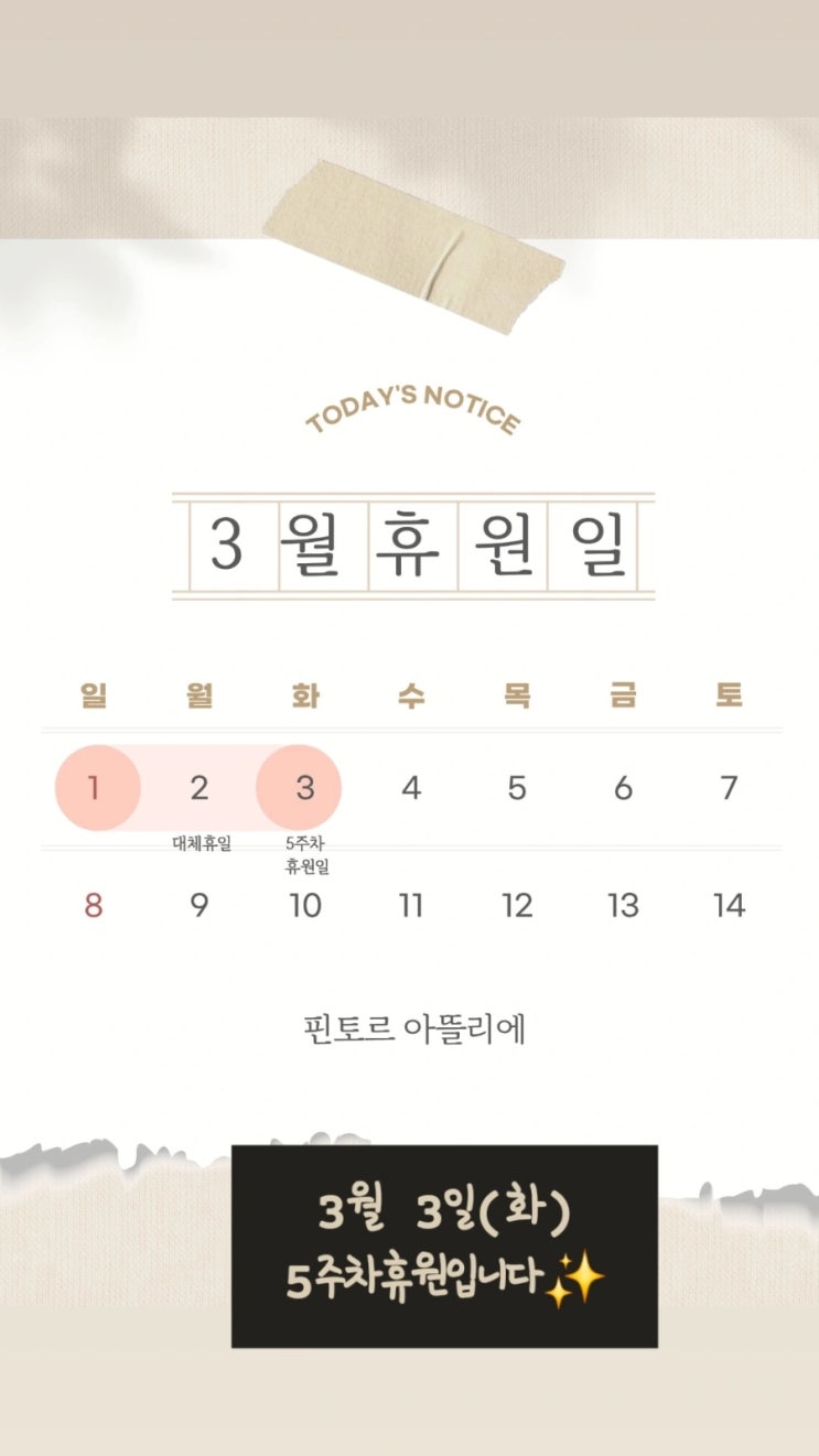 3월 3일(화) 5주차 휴원안내