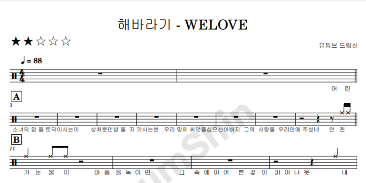 해바라기 - 위러브 WELOVE ㅣ 드럼 악보