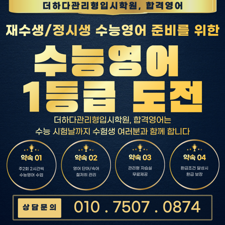 대전둔산동, 더하다관리형입시학원, 정시 현역생, 재수&N수생 대상~~ 수능영어 1등급 보장 클래스 모집합니다!!