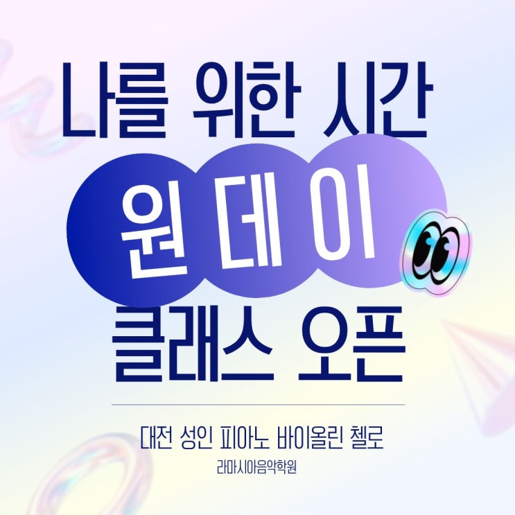 제서3302호 안녕하세요, 대전 성인 피아노 / 바이올린 /첼로 라마시아음악학원입니다 : ) 2026년 무엇을 할까 고민하다가 생각해낸 원.데.이 클래스 오픈을 결정하게 되었어요 + 오픈이벤트는 아래에서 안내중 !! 새로 오픈한 원데이 클래스에서 준비한 단 하나는! ✨경험입니다✨ 직장인분들은 공감하실거에요 반복되는 일-집 -일 -집에 지쳐서 점점 회색인간이 되어가는 느낌...!! 회사와 한 몸이 된 듯한 그 느낌 저는 저희 학원이 지친 직장인분들께 반복되는 일상에 새로운 도전이 되는 공간이 되었으면 좋겠어요 그래서 이번 원데이 클래스는 악기를 경험하는데 초점을 두고 준비했습니다 -진행순서- 1.네이버 예약 2. 사전....... <img src="https://blogthumb.pstatic.net/MjAyNjAzMDRfMTUx/MDAxNzcyNjE4MTQxNTY0.Ec4XshvnneP8HodbsrclW-IAi5K6BZlGp9Mw8ouaFWMg._SbbKm3HhJRwWu1TcLFzpN1XrcGKfXBjMCB0du0iWVQg.JPEG/1.jpg?type=s3" />