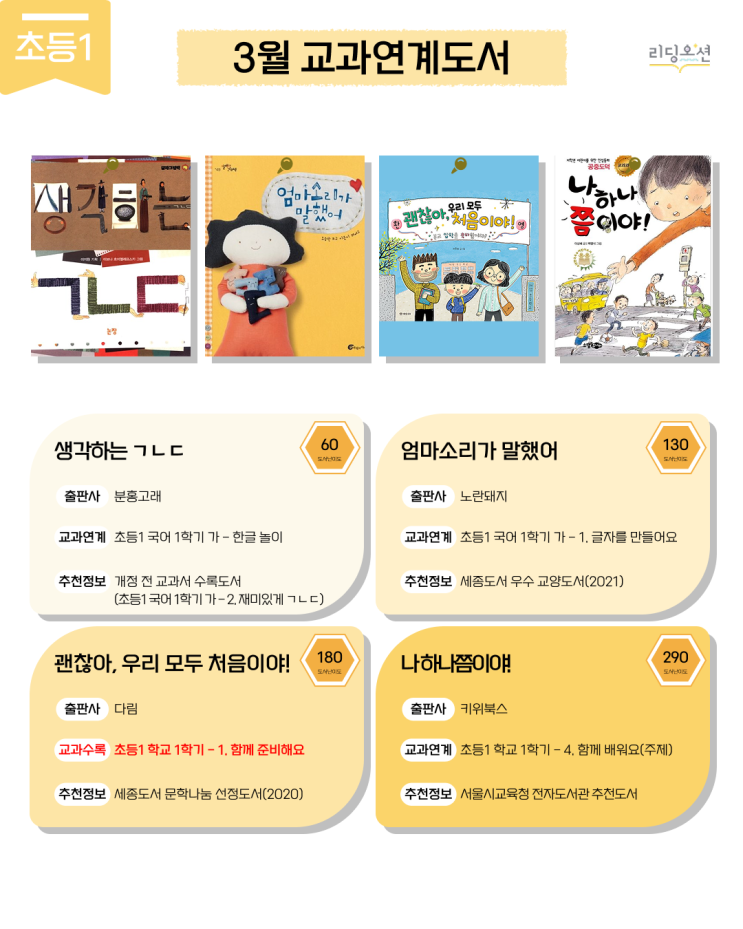 [3월] 초등 1학년 교과 연계 도서를 소개합니다