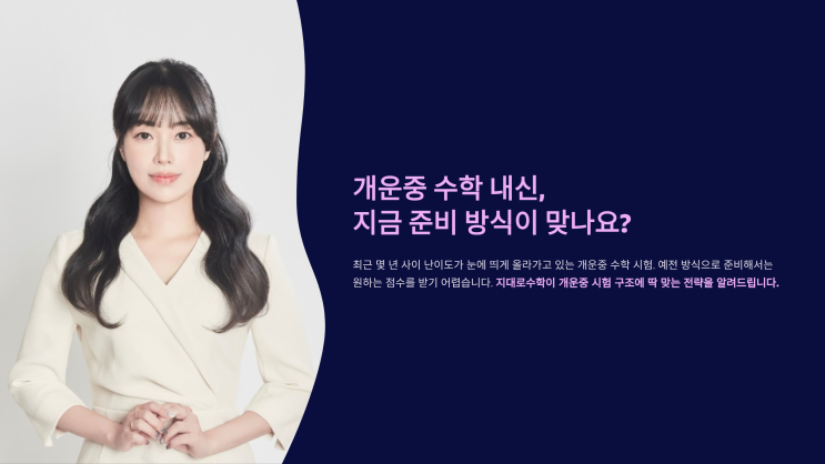 개운중 수학 시험은 최근 몇 년 사이 난이도가 눈에 띄게 올라가고 있습니다. 예전처럼 교과서 기본 문제 중심으로 준비해서는 원하는 점수를 받기 어렵습니다. 전체 문항의 70% 정도는 교과서와 학교 학습지를 기반으로 출제되지만, 나머지 20~30%는 개념의 정확한 이해와 응용력을 요구하는 변형 문제들로 구성됩니다. 특히 시험지 뒷부분에 배치되는 고난도 문항 2~3개가 등급을 결정하는 구조이기 때문에, 기본기와 심화 대비를 동시에 잡는 전략이 필요합니다. 또 하나 놓치기 쉬운 부분이 서술형입니다. 개운중은 서술형 채점 기준이 까다로운 편으로, 풀이 과정에서 단계를 생략하거나 단위를 빠뜨리면 바로 감점으로 이어집니다. 답을 맞....... <img src="https://blogthumb.pstatic.net/MjAyNjAzMTFfMTc2/MDAxNzczMjIxNTU1Mzcy.k7cFx4NBe3uDHiaAP3BRVgmpIy6oMmqhuY7SVNUb400g.T22AzGZ5x3IjJc8NjmrJK8N8wI4gBT9M_glCWLYumnwg.PNG/KakaoTalk_20260311_180447889_06.png?type=s3" />