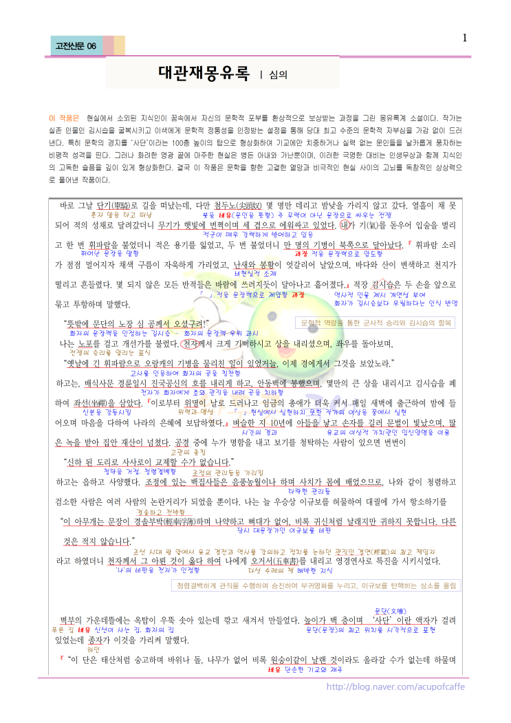 [의정부 국어학원] 고전산문06 대관재몽유록(심의) 해설 - 2027학년도 수능특강 / 완두콩 김두환