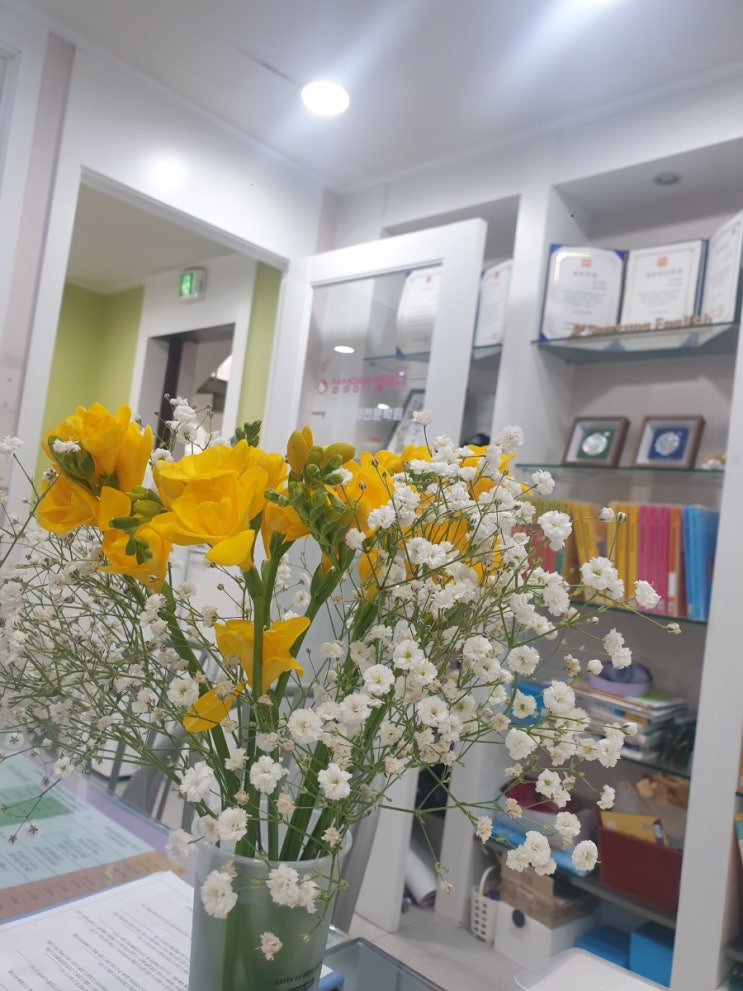 의정부 용현동 영수전문학원, 새 학기 시작과 함께 프리지어와 안개꽃