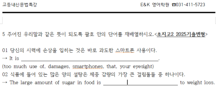 [ E&K안산영어학원] 초지고,양지고 신입생들??