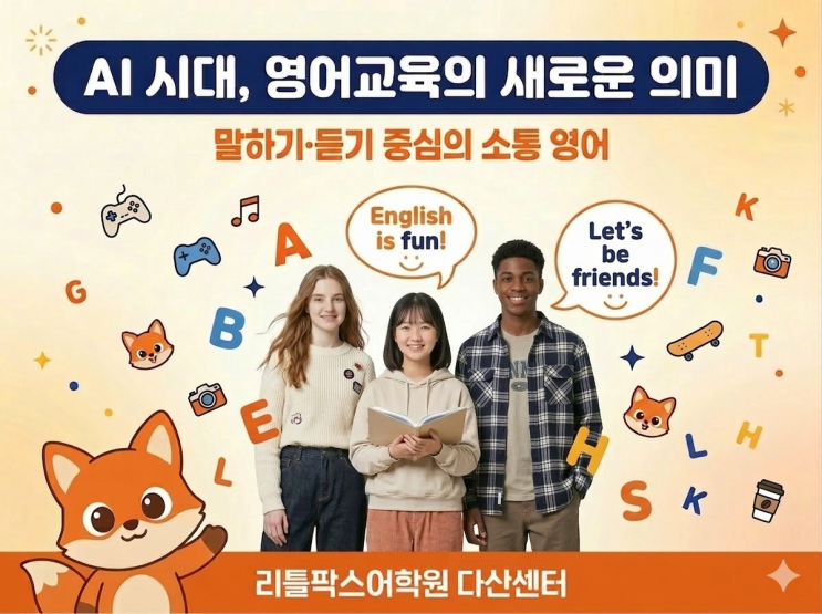 AI 시대, 우리 아이 영어는? '공부'하지 말고 '수영'처럼 배우세요! ♀️ 안녕하세요, 다산 학부모님들! 날씨가 제법 포근해지는 게 벌써 새 학기 느낌이 물씬 나네요. 요즘 뉴스 보면 'AI가 통역 다 해주는 세상'이라고 하잖아요. 그래서인지 "이제 영어 공부 굳이 시켜야 하나?" 고민하시는 분들도 계시더라고요. 하지만 AI는 도구일 뿐! 사람과 사람 사이의 '진짜 소통'과 '감정 교류'는 결국 우리 아이의 몫이겠죠? ^^ 솔직히 우리 때 영어 생각해보면... 10년을 넘게 학교, 학원에서 배웠는데... 외국인 앞에만 서면 머릿속이 하얗게 되고 꿀 먹은 벙어리....... <img src="https://blogthumb.pstatic.net/MjAyNjAzMTFfMTky/MDAxNzczMjAwNzE3MDI5.F79sUARAKckSuZoJfgy9ps2gCj7zjNgKHHDypN_c_5Yg.VUrZDQfX4rloOSQEECY8QaU4-IYmjoz-yxaDmUvSpj8g.PNG/KakaoTalk_Photo_2026-03-11-12-44-31.png?type=s3" />