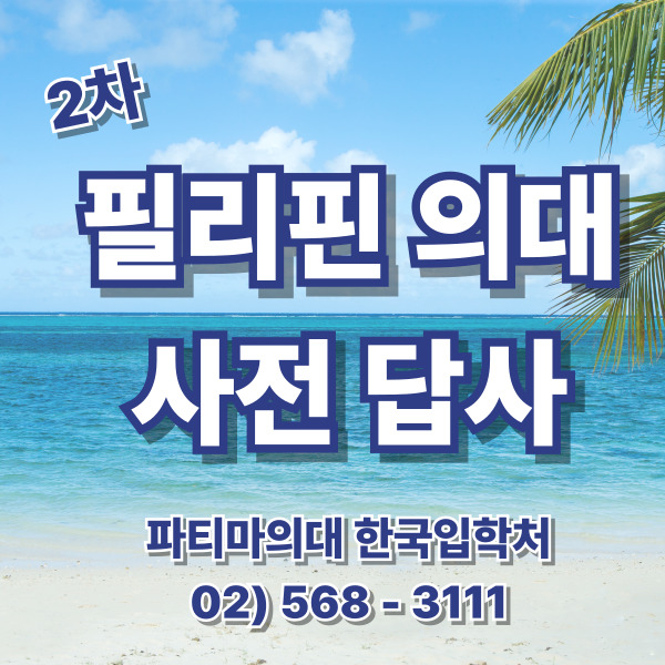 필리핀 의대 사전 답사가 꼭 필요한 이유 해외 의대 진학을 희망하는 학생들과 학부모를 위한 해외 의대(필리핀 의대) 사전답사 프로그램 안내입니다. 실제 의과대학 방문, 의대 수업 체험, 1 대 1 입학 상담을 통해 진학 가능성을 직접 확인할 수 있는 일정으로 구성되어 있습니다. “필리핀 의대… 정말 잘 한 선택일까?” “학교는 어떤지, 치안은 안전한지 직접 가서 확인하고 싶다.” “6년 이상 공부해야 하는데 가 보지도 않고 보내도 될까?” 인터넷 검색을 해 보면 홍보는 많지만 막상 직접 가서 보고 판단할 수 있는 기회는 많지 않습니다. 그래서 파티마 의대 한국입학처에서는 필리핀 의대 진학을 고민하는 분들을 위해 3월에 2차 필....... <img src="https://blogthumb.pstatic.net/MjAyNjAzMDZfMzUg/MDAxNzcyNzYyNDY5OTQ4.p5UpfRRHPZJe3LOqDqkfCBt3UDGtUq9X6UZsU6hxLqkg.-08HJXWRwXPMP4rKxDMNZZ0mZVcVjZl507v83_BxRPsg.JPEG/%C7%CA%B8%AE%C7%C9%C0%C7%B4%EB_%BB%E7%C0%FC%B4%E4%BB%E7.jpg?type=s3" />