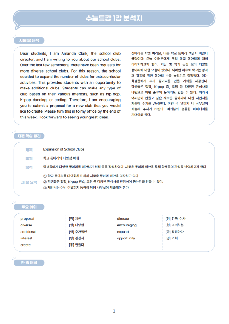 [무료 다운로드] 2027 수능특강 영어 1강 분석지 [좌지문 우해석 / 구문분석 / 한줄해석 / 끊어 읽기 / 문장테스트] 분석지 변형문제 프로그램 지인에듀