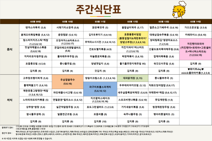 이투스247 일산서구점 - 3월 2주차 식단표