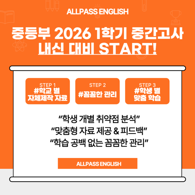 [올패스 중등부] 26년 1학기 중간고사 내신대비 START![신길중영어학원,대방중영어학원]