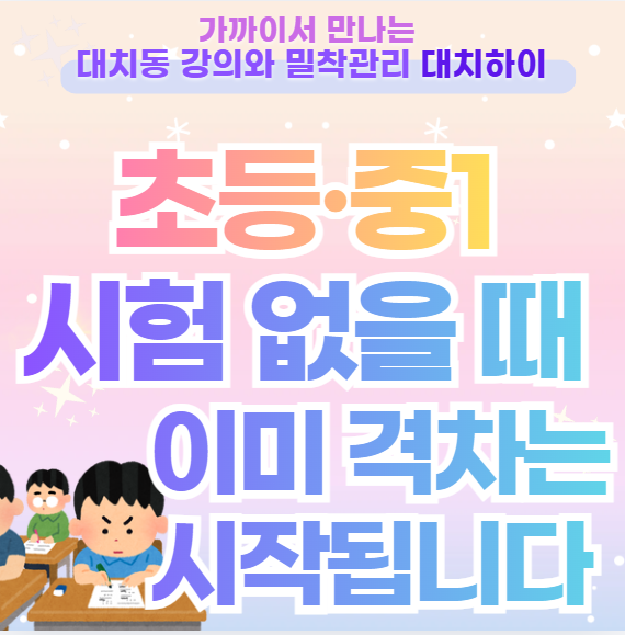 초등 중1 내신 없을때 격차는 이미 시작됩니다. 당서초 선유초 당중초 영동초 대치하이학원