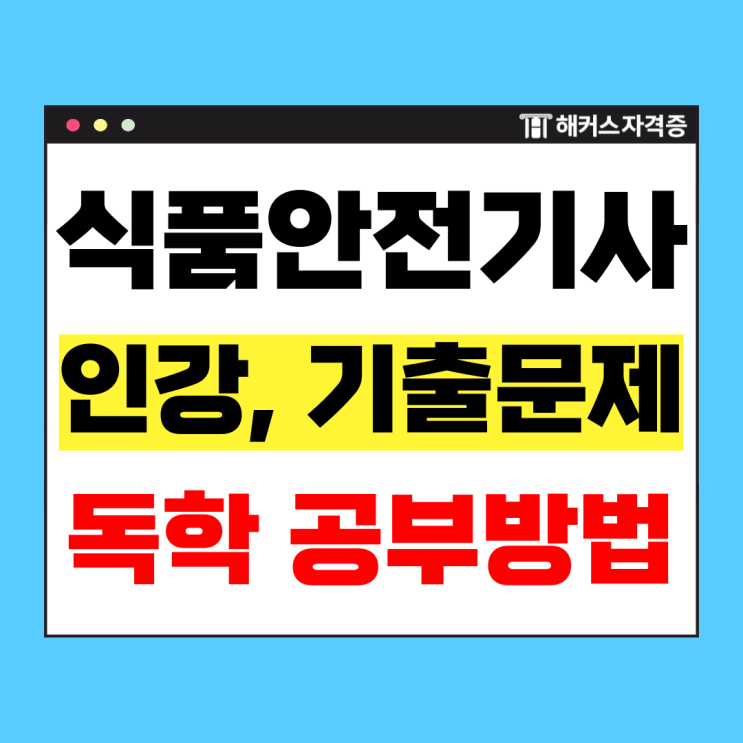 식품안전기사 독학 방법 공유! 안녕하세요 저는 현재 사기업 연구소에서 3년 차로 근무를 이어가고 있는 직장인입니다. 올해 초인 3월 즈음 업무를 수행하던 중, 내년이나 내후년에는 HACCP 분야 혹은 공기업으로 이직을 해야겠다는 생각이 들어 성공적인 이직을 위해 가장 기본이 되는 자격증을 우선적으로 취득해야겠다는 결심을 하였습니다. 대학 시절에 화학과 미생물 과목을 어느 정도 접해본 경험은 충분히 있었으나, HACCP 시스템과 식품가공공정학 부분은 여전히 생소하게 느껴지는 분야여서 관련 분야의 전문가이신 권유진 선생님의 강의를 수강하며 체계적으로 준비하고 싶었습니다. 아무래도 직장 생활을 병행하다 보니 스스로 공부를....... <img src="https://blogthumb.pstatic.net/MjAyNjAzMThfMjgx/MDAxNzczNzk4MjI5MTkx.hI2z4QFPNruHMkekWh7LOiXkAJABI7dFR3X9ZzvCb3sg.KQDXFWSMDwaDJWMcoXF1XEjwjKhFrFd7ImE388f87w0g.PNG/%BD%C4%C7%B0%BE%C8%C0%FC%B1%E2%BB%E7-%BD%C7%B1%E2_%BA%B9%BB%E7%BA%BB-_1_-001.png?type=s3" />